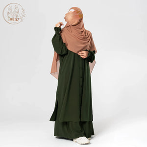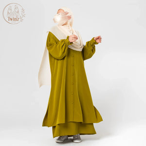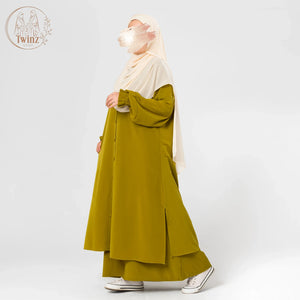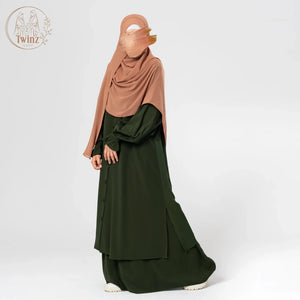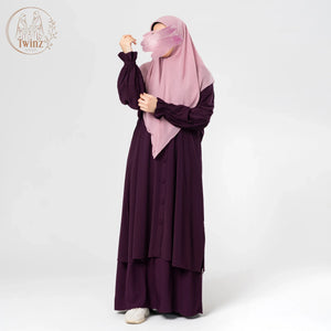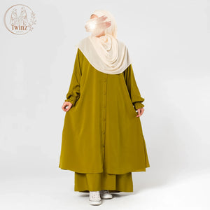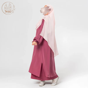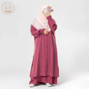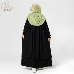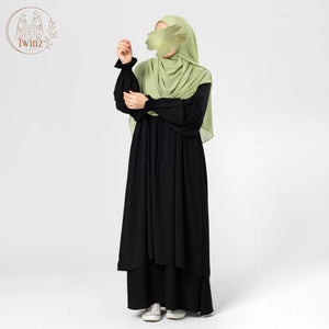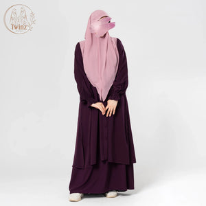 تصميم يجمع بين الملحفة والإدناء، بخامة كريب ماليزي خفيفة وراقية.