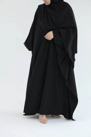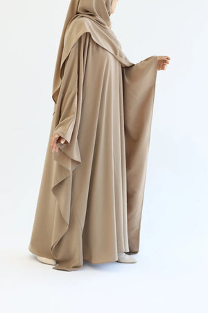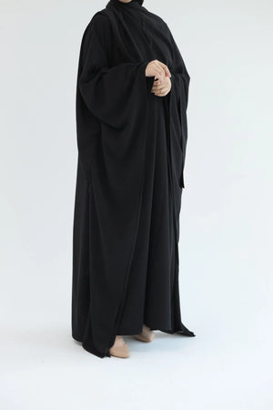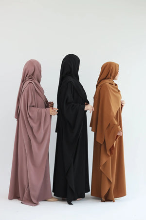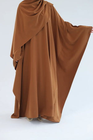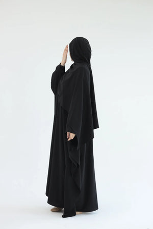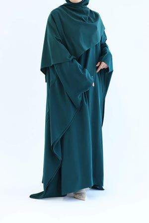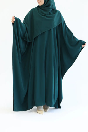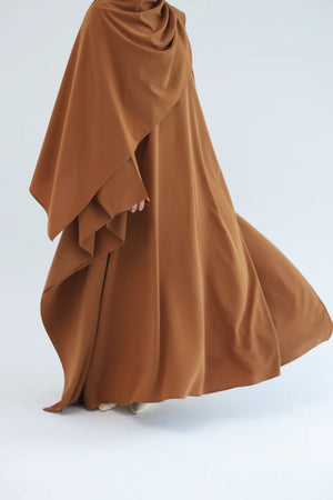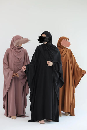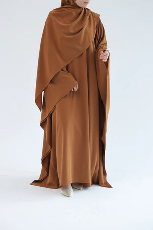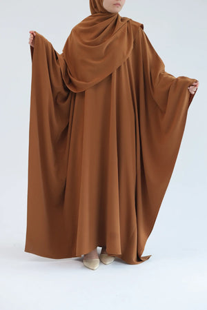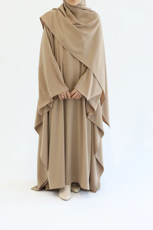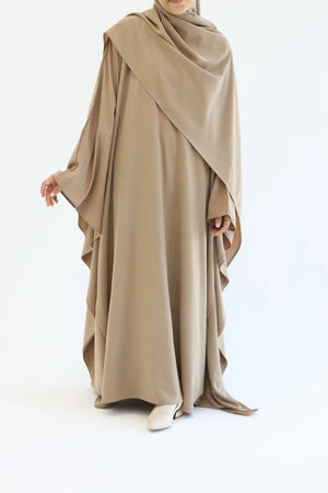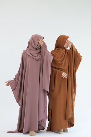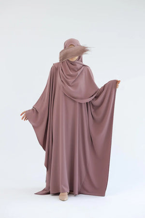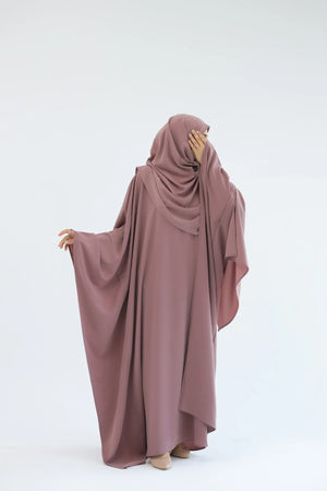 تصميم فضفاض مريح، بحجاب من نفس اللون والماتيريال،