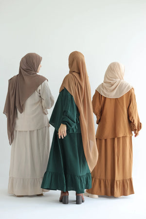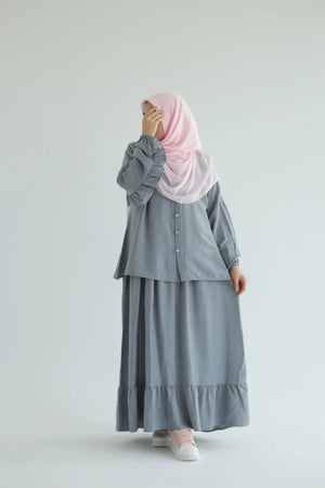تقدري تلبسيها كاملة كشكل أنيق، أو تفكي القطع وتلبسي الجيبة أو البلوزة مع حاجات من دولابك!